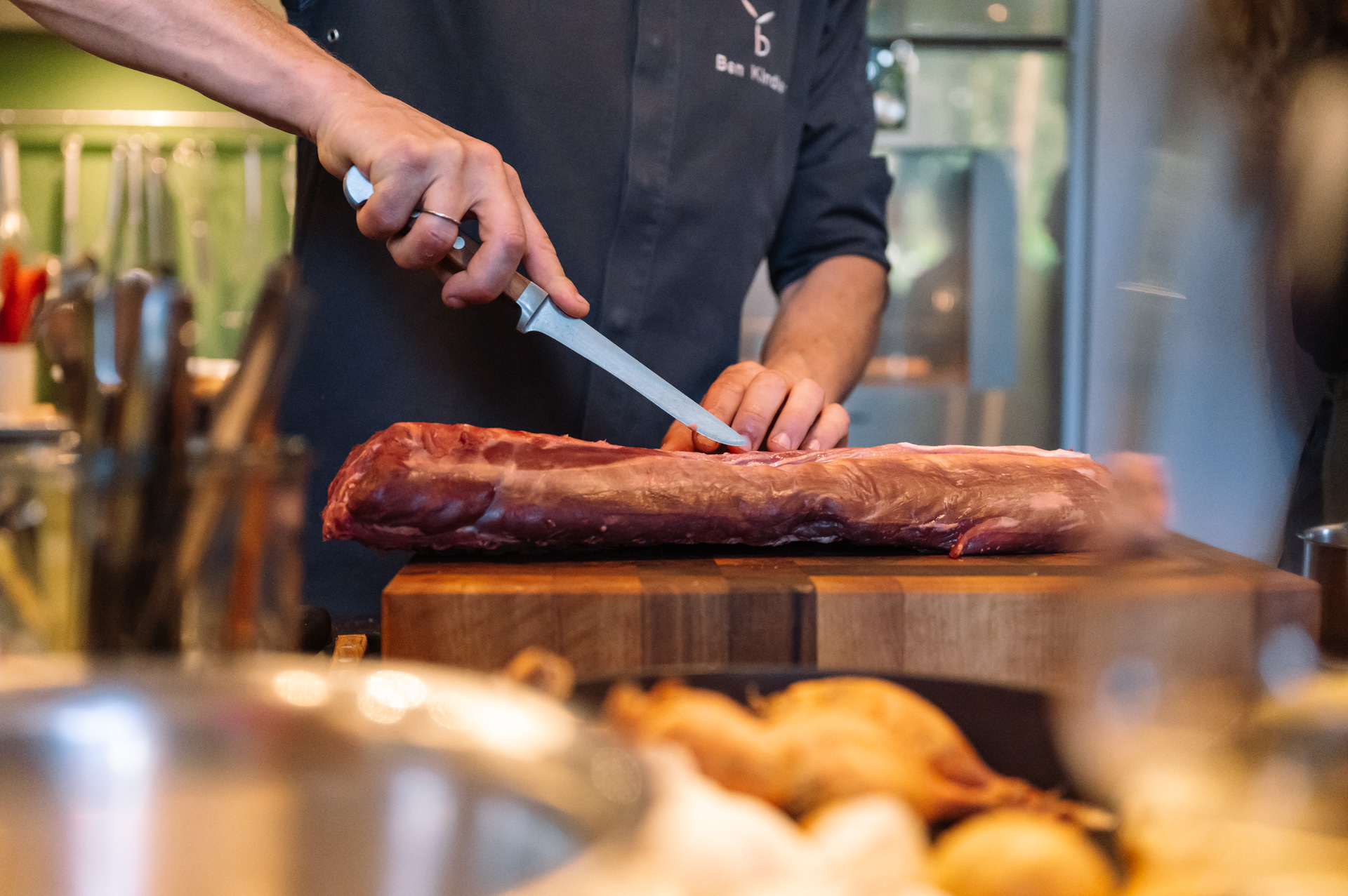 Für das Kochevent in Ben Kindlers Kochschule hatte ich als Teilnehmerin nicht nur die Gelegenheit, zu lernen und zu genießen, sondern den Abend zudem fotografisch festzuhalten. Das Ziel bestand darin, die lebendige und gemeinschaftliche Atmosphäre des Events einzufangen und gleichzeitig die Leidenschaft für Lebensmittel sowie das Weitergeben von Wissen seitens Ben und seines Teams zu dokumentieren. Die erstellten Bilder reflektieren die Freude am Kochen und das gesellige Miteinander und eignen sich beispielsweise ideal zur Präsentation künftiger Events auf der Website und in den sozialen Medien.